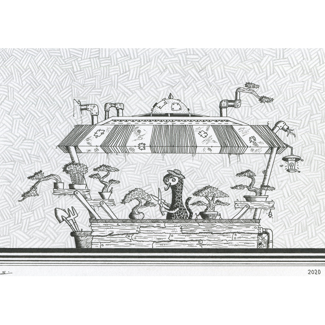 Part of Samuel's Whimsical World series, this Fine detail original whimsical character drawing is done in ink and graphite created in Samuel's original and unique style.