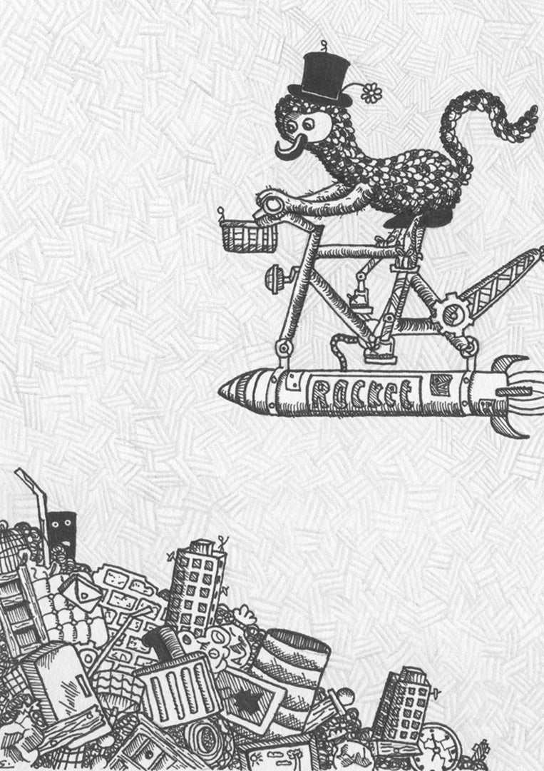 Part of Samuel's Whimsical World series, this Fine detail original whimsical drawing is done in ink and graphite created in Samuel's original and unique style.