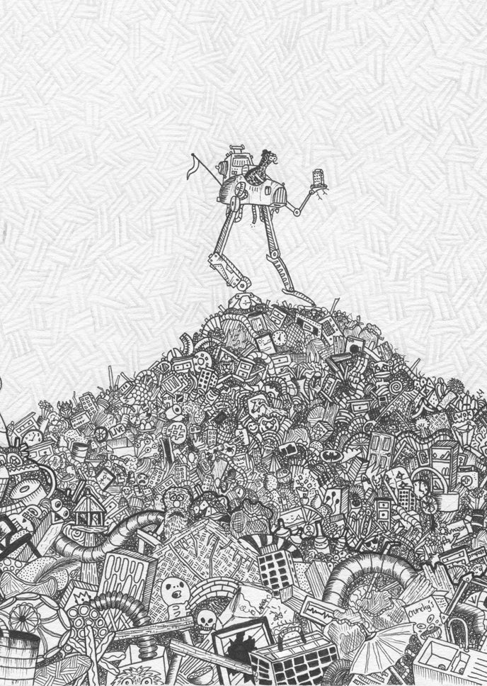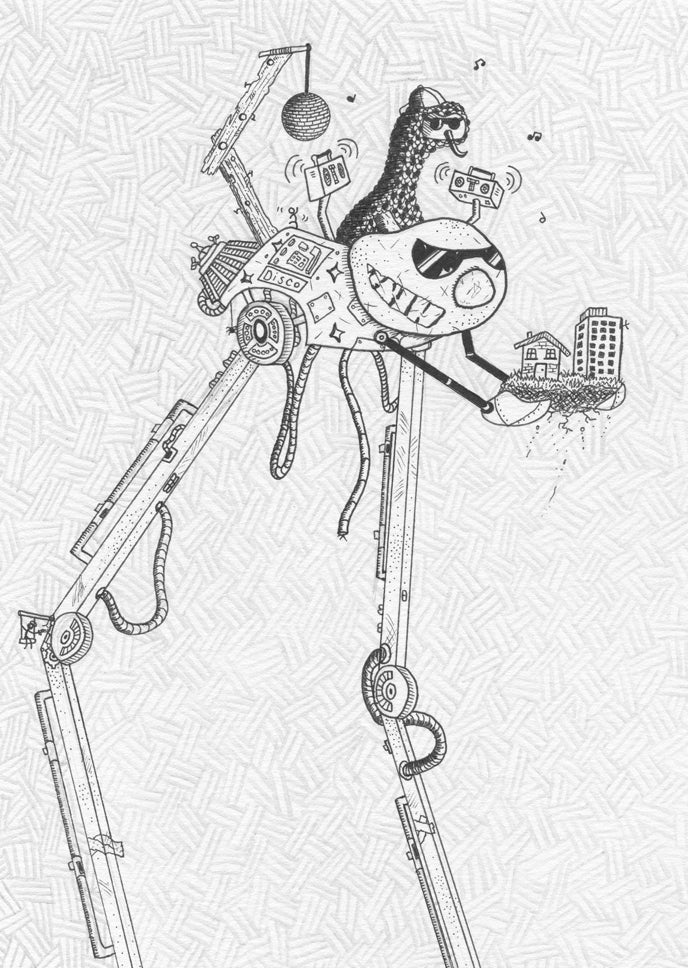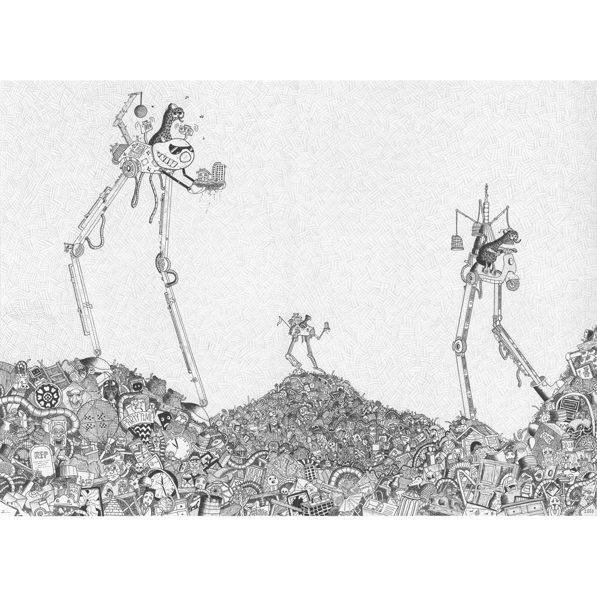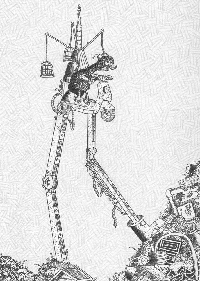 Fine detail original whimsical character drawing in ink and graphite created in Samuel's original and unique style.